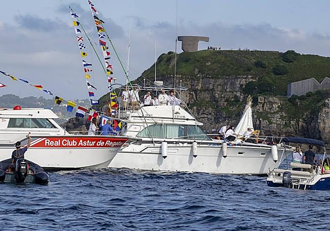 Después de que la banda de música interpretase el himno nacional, al que sucedieron gritos de «¡Viva la Virgen del Carmen!», la procesión marinera del barrio del Carmen, con un arraigo al que avalan más de trescientos años de historia, recorrió las calles Álvarez Garaya, Felipe Menéndez y Marqués de San Esteban para llegar a los Jardines de la Reina y embarcarse en la mar frente a la estatua de Pelayo, en la conocida como rampa 'La Barquera'.