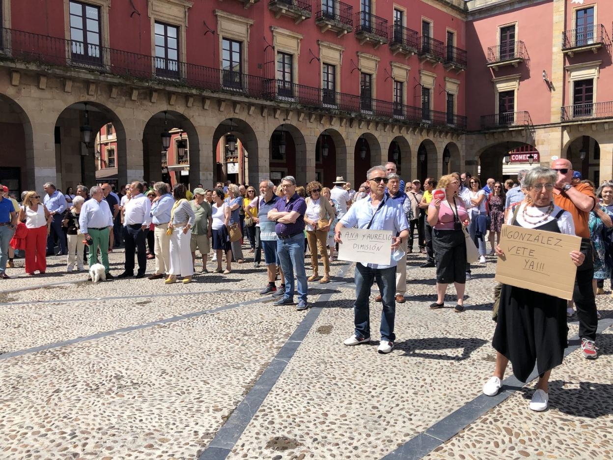 Tras la lectura del manifiesto en El Náutico, se dio paso a una marcha hasta la plaza Mayor, durante la cual los asistentes reclamaron la dimisión de la alcaldesa, Ana González y el concejal de Movilidad, Aurelio Martín. La movilización transcurrió sin incidentes, salvo un joven que, a la carrera ante la Casa Consistorial, soltó un «¡'cascayu' libertad!», a lo que los manifestantes respondieron con risas.