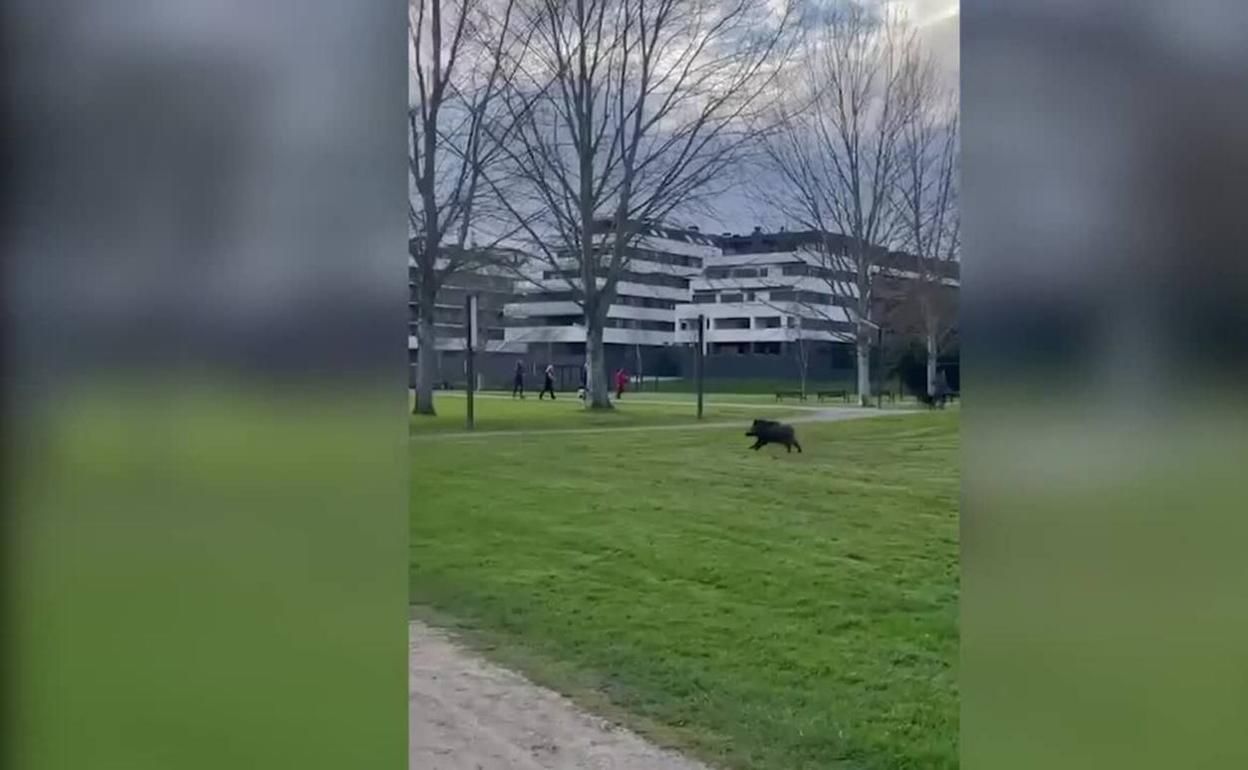 Los usuarios del parque fluvial se llevaron hoy un gran susto con la incursión de un jabalí en una de los espacios verdes más frecuentados por los vecinos de la zona este. Un vídeo atestigua el impacto que ocasionó la repentina aparición del suido, que se cruzó con varias personas y emprendió la huida hacia La Coría para buscar refugio en una zona menos abierta.