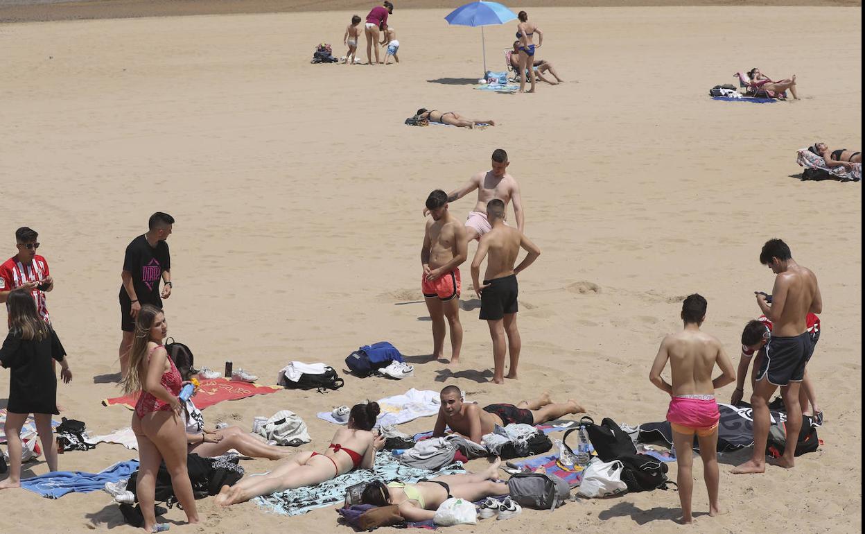 Los bañistas no han dudado en acudir al arenal de San Lorenzo durante este caluroso sábado