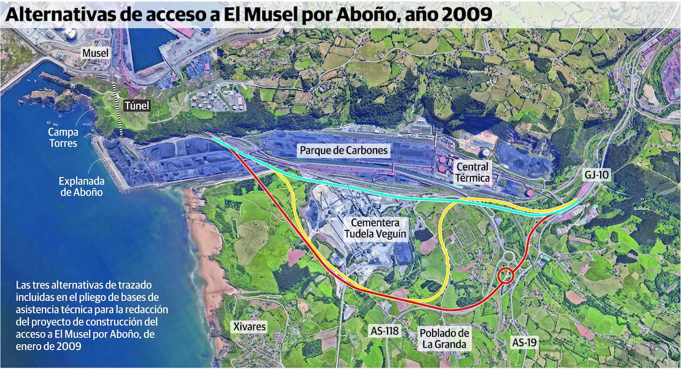 En la reunión celebrada en el Ayuntamiento, la primera que habló del túnel de Aboño fue la presidenta de la Asociación de Vecinos de Pescadores, Rita Rendueles, quien hizo referencia a la cantidad de camiones que llegan por Príncipe de Asturias y que, «si no se hace el túnel de Jove, hay que aprovechar el de Aboño». Hay que recordar que en Aboño existen dos túneles que conectan el valle con el puerto de El Musel. El más antiguo lleva años cerrado al tránsito, debido a que ha sufrido algunos desprendimientos que la Autoridad Portuaria de Gijón se niega a reparar. Pero hay otro de reciente factura, de algo más de 400 metros de longitud. Fue construido a la vez que la ampliación de El Musel y conecta esa zona portuaria con el parque de carbones de Aboño. Hay que decir que dicho acceso sí podría ser operativo para los camiones que transportaran graneles sólidos como carbón y mineral de hierro, pero no lo sería para los que llevaran productos siderúrgicos, combustibles o contenedores, ya que deberían atravesar prácticamente todo el puerto para llegar a las diferentes terminales.
