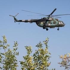 Un helicóptero ucraniano patrulla en Slaviansk