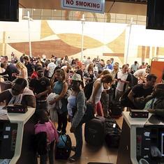 Turistas esperan en los mostradores de facturación en el aeropuerto de Sharm el-Sheij.