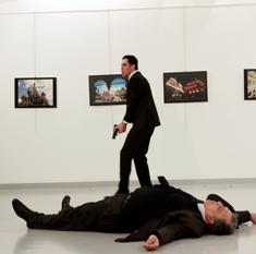 El fotógrafo ha recordado lo «tranquilo» que parecía el embajador durante su discurso, hasta que «vinieron los disparos en una rápida sucesión y el pánico de los asistentes». «El cuerpo del embajador yacía en el suelo, a unos metros de mí. No podía ver sangre a su alrededor, creo que le dispararon por la espalda». En su relato, Ozbilici describió al detalle toda la secuencia y sus impresiones. «Me moví hacia atrás y hacia la izquierda, mientras que el tirador -identificado como el agente de policía Mevlut Mert Altintas- hizo un gesto con su arma a las personas que permanecían en el lado derecho de la sala». «Al principio no me imaginaba las motivaciones del tirador. Pensé que sería un militante checheno. Pero más tarde la gente decía que estaba gritando sobre la ciudad siria de Alepo. Por lo tanto, seguramente estaba enfadado por los bombardeos rusos de Alepo que estaban dirigidos a expulsar a los rebeldes antigubernamentales. Muchos civiles han muerto en los combates. También gritó 'Allah akbar', pero no pude entender el resto de lo que dijo en árabe».