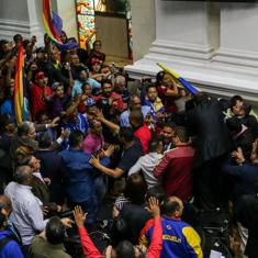 Chavistas irrumpen en la Asamblea Nacional venezolana, durante la sesión parlamentaria.