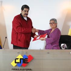 Nicolás Maduro junto a Tibisay Lucena, presidenta del Consejo Nacional Electoral.