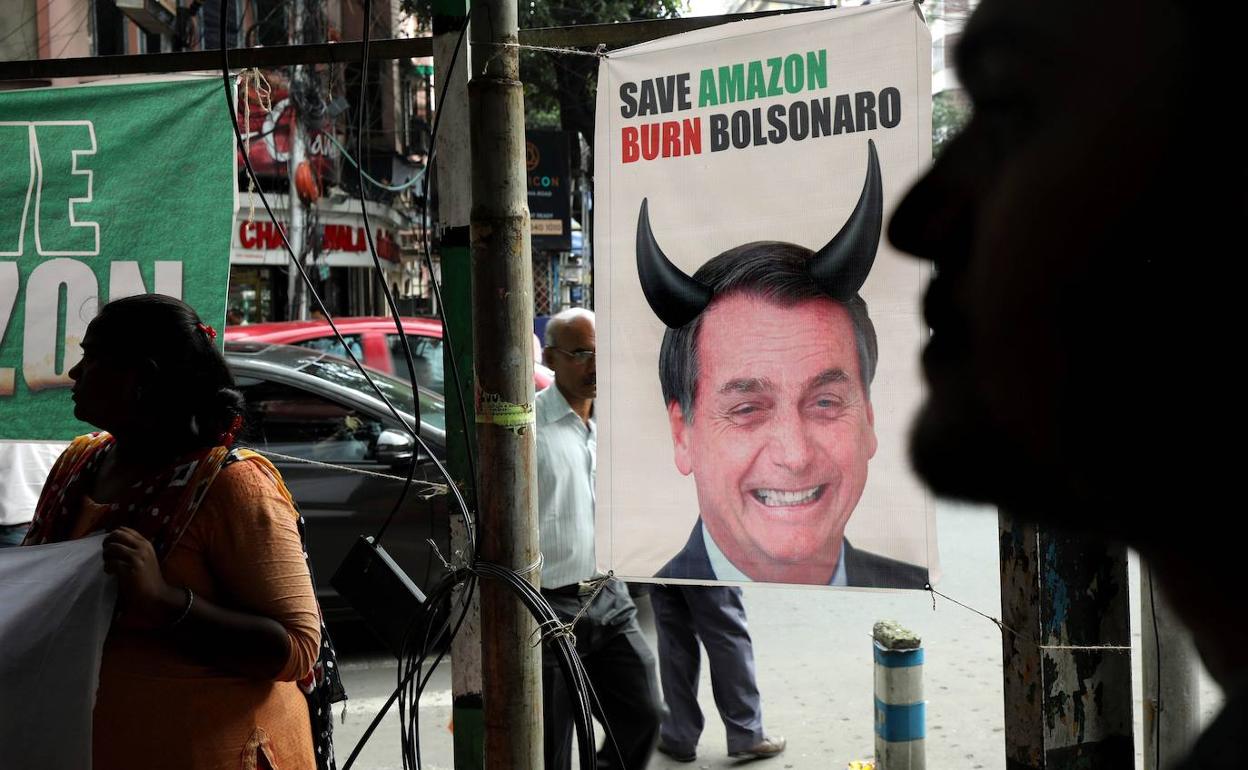 Pancartas en protesta por la gestión de Bolsonaro sobre el incendio del Amazonas. EFE