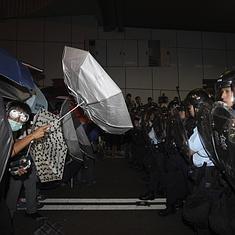 Cientos de manifestantes, muchos de ellos provistos con un paraguas como escudo, acudieron al lugar y rodearon a los agentes en un paso subterráneo de la calle Lung Wo -situada en el centro de la ciudad- próximo al edificio de la jefatura de Gobierno y el Parlamento de Hong Kong. Tras un leve forcejeo en el que los policías golpearon a algún manifestante con sus porras, los antidisturbios decidieron retirarse del lugar. La Federación de Estudiantes aseguró que los agentes llegaron a usar gas pimienta, mientras que algunos periodistas afirmaron que habían sido golpeados, según la edición digital del diario 'South China Morning Post'.