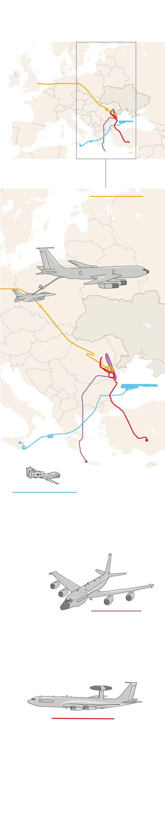 Desde el inicio de la invasión, las aeronaves de vigilancia de la OTAN se despliegan en la frontera sin ocultarse
