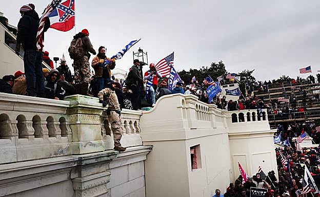 La confirmación del ganador en las elecciones debía haber sido un trámite sencillo. Pero cientos de seguidores de Trump decidieron abortarlo con un asalto al Capitolio que se cobró una muerte por arma de fuego en el recinto gubernamental y al menos otras tres en sus inmediaciones. El vicepresidente Mike Pence, mano derecha de Trump durante los últimos cuatro años, se vio obligado a suspender la sesión, y congresistas y senadores fueron evacuados de urgencia a lugares seguros ante unos asaltantes que en algunos casos iban armados.