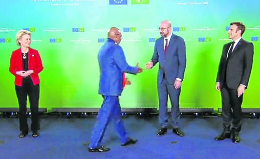 La presidenta de la Comisión, Ursula von der Leyen, volvió este viernes a sufrir un desplante en un acto público. Durante la recepción en Bruselas, el ministro de Exteriores de Uganda, Haji Abubaker Jeje Odongo, solo estrechó la mano de Michel y Macron e ignoró la presencia de la alemana hasta que el mandatario francés le conminó a saludarla.