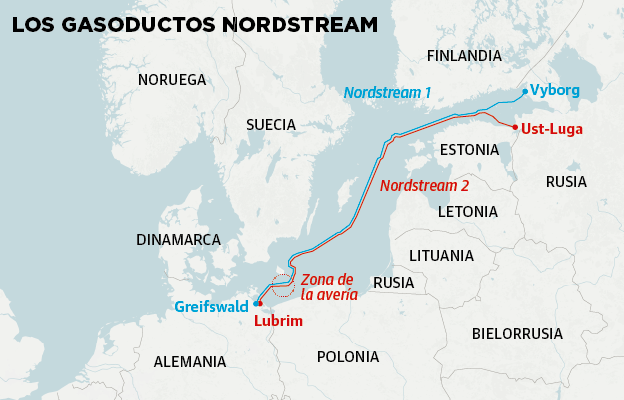 La compañía Nord Stream AG informó este martes de que, en la noche del lunes, se produjeron sendos incidentes técnicos en los gasoductos Nord Stream-1 y Nord Stream-2. La presión en el interior de la tubería cayó en una de las líneas Nord Stream-2. El problema fue detectado en el conducto A. El operador subrayó el hecho de que «daños sin precedentes ocurrieron el mismo día simultáneamente en los dos ramales del Nord Stream-1 y en uno del Nord Stream-2», lo que a su vez causó «tres fugas» en el mar Báltico, y avisó que «aún no es posible calcular el momento cuando estará reparada la infraestructura».