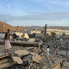 Los ciudadanos inspeccionan los daños causados por Al-Qaida en Mukalla.