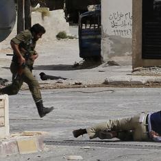 Un periodista busca refugio de los disparos de un francotirador en Siria.