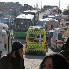 Los primeros evacuados de Alepo abandonaron los barrios rebeldes a bordo de autocares y ambulancias
