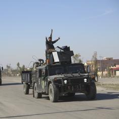 A su paso rumbo a Mosul, los militares fueron recibidos por numerosos niños de los pueblos liberados del EI, que los saludaron a pie de carretera haciendo el gesto de la victoria con los dedos.