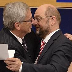 Martin Schulz (d) felicita a Jean-Claude Juncker.