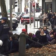 Los activistas, durante una sentada en Bruselas.