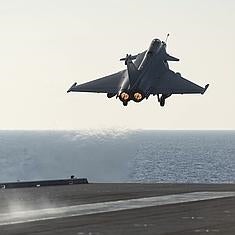 Un avión militar francés despega desde el portaaviones Charles de Gaulle.