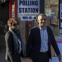 Sadiq Khan, junto a su esposa, tras ejercer su derecho al voto.