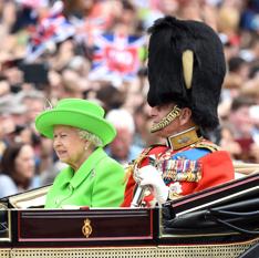 La Reina preside una gran parada militar, cerca de Buckingham, antes de asistir a un desfile aéreo rodeada de toda la Familia Real