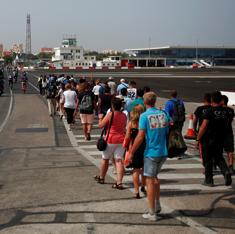 Decenas de personas cruzando la frontera entre Gibraltar y la Península.