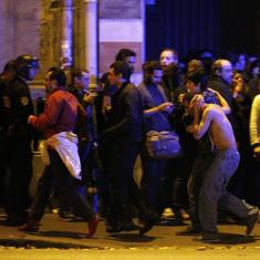 Varios heridos son evacuados en los alrededores de la sala de fiestas Bataclan en París.