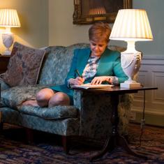La líder escocesa Nicola Sturgeon escribe la carta que le ha enviado este viernes a Theresa May. EFE