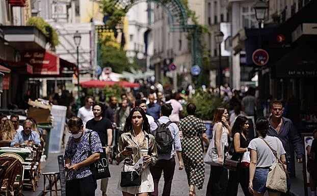 Dos turistas pasean con mascarilla ante el Museo del Louvre, en París. EFE