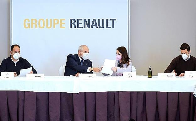El acuerdo ha sido rubricado, durante la reunión de este miércoles de la Comisión Negociadora, por Jesús Francisco Arranz y José Antonio Rodríguez, de Renault; Rubén González, de CC.OO.; Laura del Ser, de UGT, y Daniel Parra, de SCP.