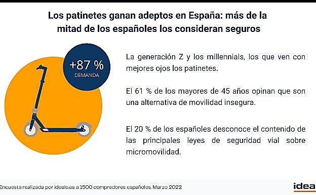 Con todo, existe una brecha generacional que impide un apoyo unánime por todos los segmentos de la ciudadanía. Mientras que tanto la generación Z, de entre 18 y 24 años, como los millennials, de entre 25 y 34 años, confían de forma masiva en esta modalidad de transporte, el 61 % de los mayores de 45 años opinan que son una alternativa de movilidad insegura. De hecho, en comparación a la encuesta realizada por idealo en 2021, esta diferencia se ha agrandado y los segmentos más jóvenes de la sociedad han reafirmado su posición, al tiempo que los seniors han aumentado su desconfianza.