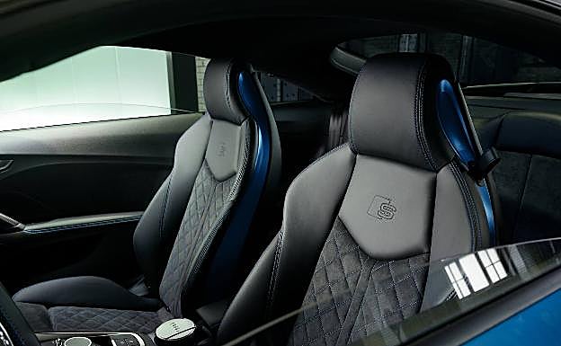 Y en el interior del Audi TT 45 TFSI S line competition plus toma como base el paquete deportivo S line, en el que predominan los tonos oscuros. Los asientos deportivos S pueden ir tapizados con cuero Alcantara en negro u, opcionalmente, con cuero napa fina . Los logotipos S en relieve en los reposacabezas integrados y las costuras de contraste en Rojo Expreso o Azul Ara añaden un toque distintivo al habitáculo. Elementos como los aros en el interior de las salidas de aire o la moldura del túnel central están disponibles en Rojo Tango (exclusivo para el Coupé), Azul Turbo o Gris Pizarra.