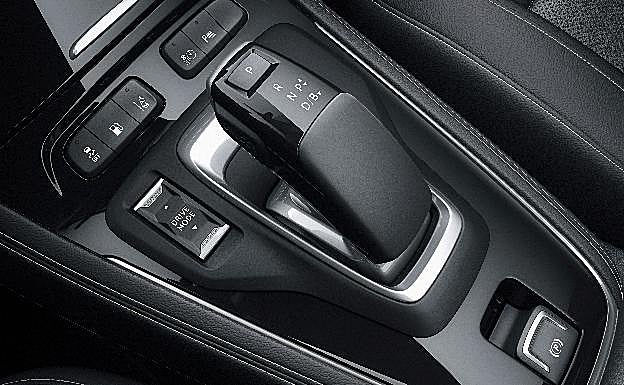 Mediante un botón situado junto a la palanca del cambio automático podemos seleccionar entre cuatro modos de conducción, «Eléctrico», «Híbrido», «Tracción Total» y «Sport».