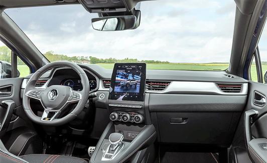 Las versiones híbridas del Captur E TECH combinan un motor de gasolina de 1,6 litros de cilindrada con dos motores eléctricos, acompañados por una caja de velocidades automática «inteligente» que optimiza todo el sistema para lograr unos niveles de consumo y emisiones de CO2 particularmente contenidos. En conjunto ofrecen una potencia máxima combinada de 145 caballos. De hecho, las versiones E TECH son versiones híbridas que nacen de modelos 100% eléctricos, y no al revés. Su arranque siempre es en 100% eléctrico y, en función de cómo sean las condiciones de circulación y la manera de aprovechar la regeneración de energía al conducir, se puede llegar a circular, en ciudad, hasta un 80% del tiempo en modo 100% eléctrico, lo que redunda en un ahorro de hasta un 40% en el coste de carburante. Esta versión dispone de la etiqueta ECO de la Dirección General de Tráfico.
