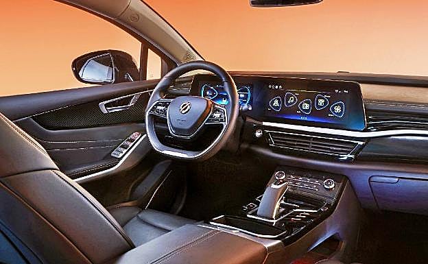 En el interior la primera impresión es buena, con unos acabados muy correctos, un diseño limpio y agradable, y con unas plazas cómodas. Las plazas traseras disponen de 288 milímetros de radio alrededor de las rodillas, y los pasajeros tienen acceso al control de la radio y el sistema de audio. El conductor dispone de dos grandes pantallas de 10,2 y 12,3 pulgadas, con un sistema mutimedia compatible con Apple Car Play y Android Auto. Además se trata de un vehículo conectado, lo que facilita el control y sel seguimiento para la gestión de flotas. El maletero dispone de 500 litros para alojar el equipaje de los viajeros.