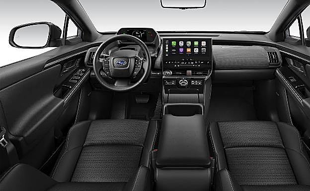 En el interior del nuevo Solterra destaca un entorno confortable en cada uno de sus asientos, y en donde la mirada se centra en el panel de instrumentos de grandes dimensiones (12,3») ubicado en la consola central. Los mandos de control están a mano. Tampoco pasan desapercibidos detalles como el cargador inalámbrico para el móvil, el techo panorámico, un maletero con 452 litros de capacidad, o la calidad del cuero sintético de los asientos.