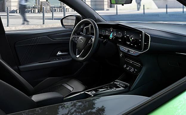 El Mokka GS Line tiene un concepto más deportivo, con logos en negro y una línea lateral en rojo. Se puede elegir con techo bicolor en rojo, negro o blanco. También incluye los paneles centrales interiores con motivos en rojo, y de serie incluye tapicerías en Alcántara. El salpicadero es muy llamativo, con dos pantallas digitales de 10 y 12 pulgadas prácticamente unidas. Una tras el volante y otra a la derecha. Además, incluye en la parte inferior de ésta última una botonería de acceso rápido para las principales funciones.
