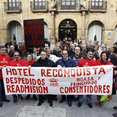 Los trabajadores del Hotel Reconquista se concentran para pedir la readmisión de los despedidos