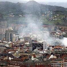 A la una y cuarto, las llamas se avivaron. Los edificios colindantes fueron desalojados, algunos por los responsables de las empresas que allí se ubicaban. El incendio que parecía inofensivo había trepado varias plantas, había alcanzado la categoría de muy grave. En dos horas el olor a humo se apreciaba en toda la ciudad, una gran chimenea se veía desde los alrededores, las impresionantes llamas circulaban con estupor de boca en boca y por internet y el ruido del helicóptero de Bomberos de Asturias, que habían acudido a colaborar en la extinción, no dejaba de sonar sobrevolando la ciudad.