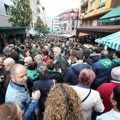 Cientos de personas abarrotaron este domingo la calle Gascona de Oviedo para asistir a la decimoséptima edición de la Preba de la Sidra, organizada por la asociación de sidrerías de la zona con la colaboración del Ayuntamiento.