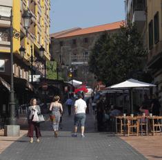 Eran cerca de las cuatro y media de la tarde de ayer cuando uno de los letreros que engalanan el Bulevar de la Sidra, en la calle de Gascona, se desprendió e hirió en la cabeza a una mujer que estaba comiendo en la terraza de la sidrería Tierra Astur.
