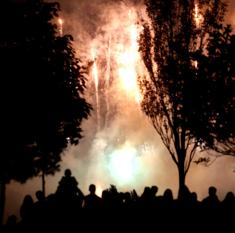Sorprendieron mucho y gustaron aún más los fuegos que dibujaron conchas de Santiago, banderas de Asturias y de Galicia, pero también se vieron fantasmas, medusas y estroboscópicos. Una palabra que parece dar miedo, pero que se refiere al juego de luces y movimiento que descienden muy lentamente, dando la sensación de que el fuego de artificio se queda suspendido en el aire. Tampoco faltaron las tradicionales palmeras lloronas.