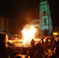 Los preparativos comenzaron a las diez con la proyección sobre los edificios de la plaza de luces e imágenes alusivas a la fiesta. Una hora más tarde, la Asociación Mercáu Astur desplegó todo un ritual mágico y pirotécnico, con cuatro sacerdotisas, una por elemento, como protagonistas del conjuro. Como remate, un majestuoso cuélebre de 15 metros, encarnación elemental del fuego, invadió la plaza y prendió la hoguera.