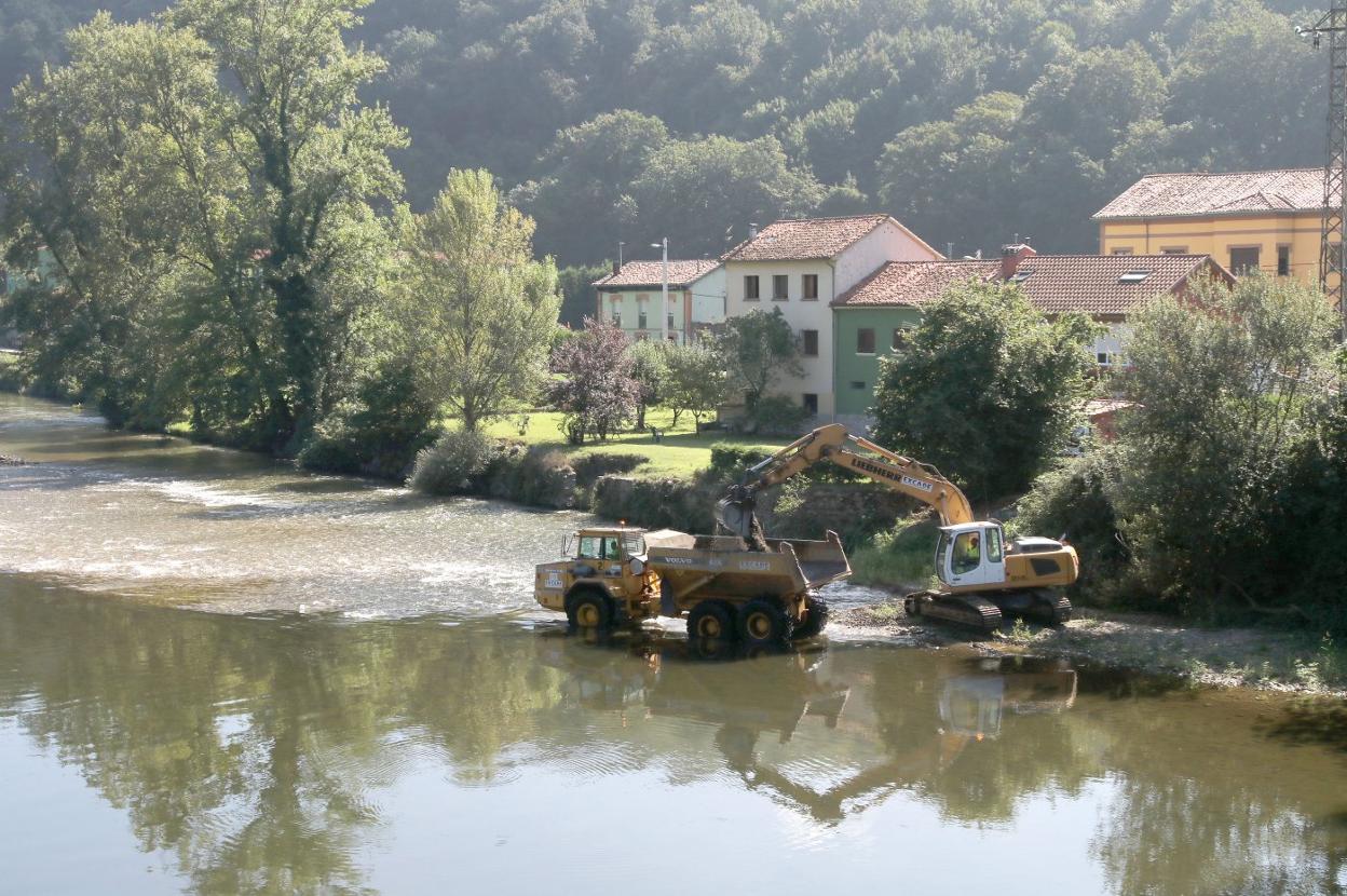 Una retroexcavadora en medio del río Nalón no se ve todos los días. La Confederación Hidrográfica del Cantábrico ya ha iniciado los trabajos de acondicionamiento del cauce del río Nalón en las inmediaciones de la vieja carretera de Avilés, frente a Casa Puyo, en Trubia. El objetivo, aseguraron desde la CHC, es «restaurar la margen izquierda del cauce, que se ha visto afectada reiteradamente por los últimos episodios de fuertes precipitaciones» y prevenir, de paso, las inundaciones que se repiten cuando llega el invierno.