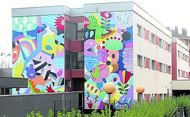 La escala cromática también es la protagonista del mural realizado en dos paredes laterales del colegio de La Corredoria. Los alumnos usaron todos los plastidecores y rotuladores que tenían para hacer sus dibujos sobre la naturaleza. Pintaron desde delfines hasta pinos, y después estas ilustraciones fueron enviadas a la japonesa Mima Hamada. Con todos, se formó una idea que plasmó primero en un folio. Después, se subió a una grúa y los dibujó sobre la fachada del colegio. Esta obra continúa impresionando a los pequeños pintores. Quién sabe si en el futuro serán ellos quienes se suban al 'andamio'.
