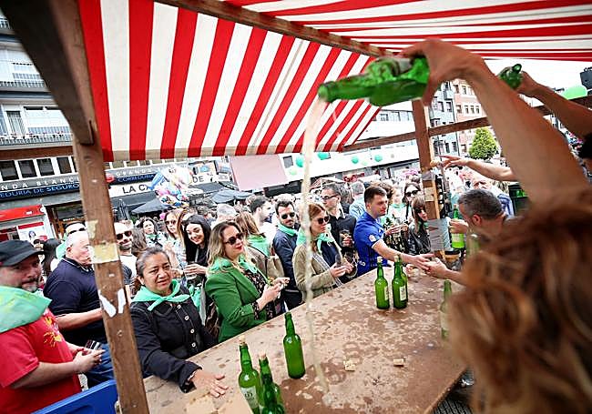 La cata de la gente que vaso en mano, a seis euros cada uno, acabó con las existencias tanto de sidra como de vasos y pañuelos de la fiesta fue para: