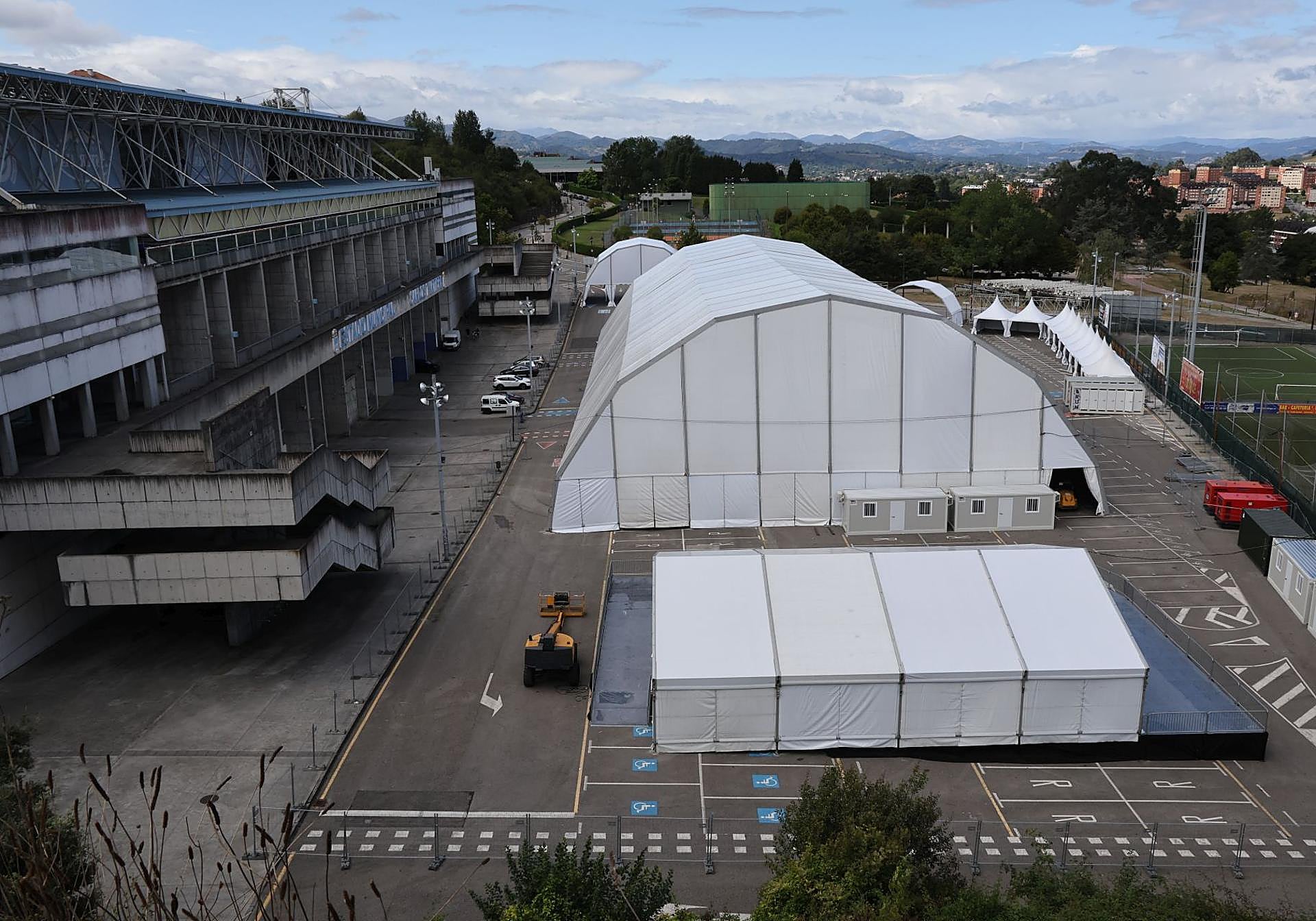 En la cuenta atrás para San Mateo, que este año se celebrará del 11 al 21 de septiembre, Oviedo ya ha comenzado los preparativos. Algunos escenarios ya están prácticamente listos, como el recinto festivo de La Ería, que se adelanta en el calendario oficial y acogerá este sábado, 6 de septiembre, su primer concierto, el Fyin Fest, con Camilo, María Becerra, María Escarmiento, Paula Mattheus, Noan y Mateo Eraña. En otros comienzan ahora el montaje, como el de las casetas hosteleras en el paseo del Bombé, escenario de actuaciones diarias y gratuitas, junto a El Antiguo.