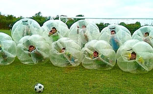 Astur Fútbol Bubble: Hay que meterse en una burbuja de plástico y disfrutar del juego. En Gijón. 70€ una hora para 8-10 personas. Teléfono 984 190 123.