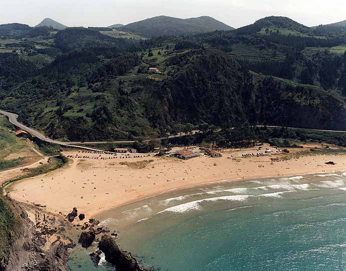 La hermosa playa dunar de Laga, enclavada en la Reserva de la Biosfera de Urdaibai y junto al cabo de Ogoño (279 m), pertenece al municipio de Ibarrangelu.