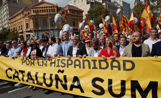 La movilización ha contado con la participación de dirigentes políticos como Inés Arrimadas, Lorena Roldán, Carlos Carrizosa y José Manuel Villegas (Cs), Cayetana Álvarez de Toledo, Dolors Montserrat y Xavier García Albiol (PP) e Ignacio Garriga (Vox), mientras que el PSC no se ha sumado a la convocatoria.